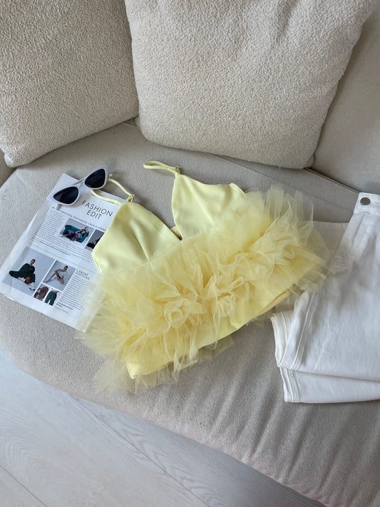 Crop i shkurter me dantelle me pala ne pjesen e siperme. Eshte ne ngjyren e...