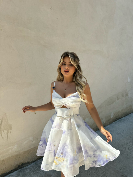 Fustan i shkurter me rrip ne bel. Eshte me motive shume te vecanta dhe eshte...