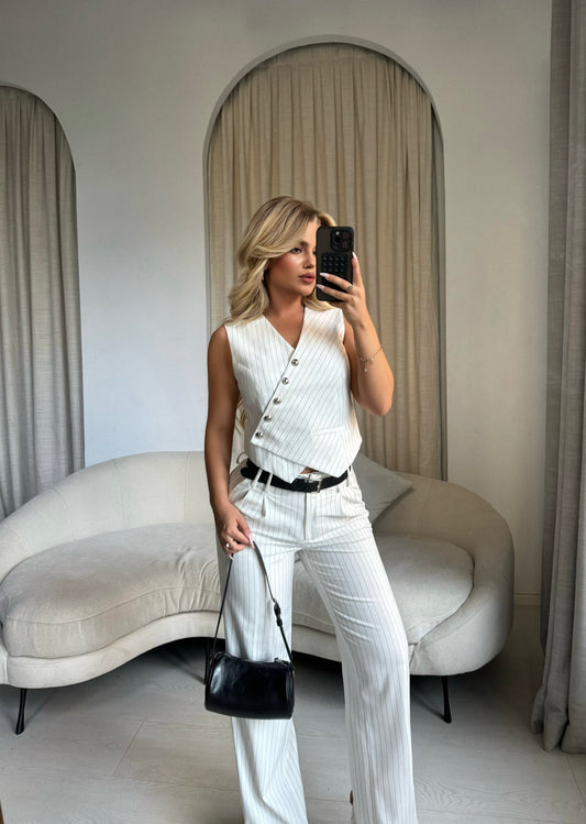 Set klasik me viza. Eshte me jelek me kopsa anash dhe pantallona te gjata. Ka...