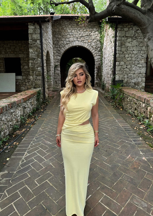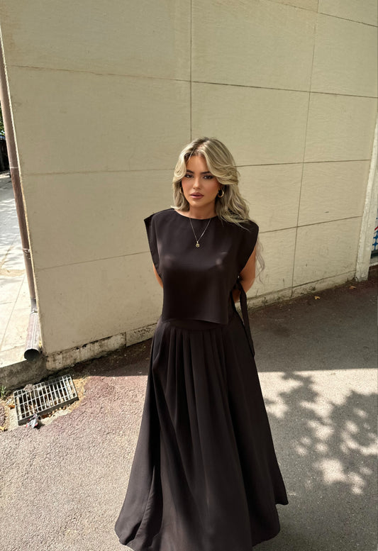 Fustan i gjate me zinxhir pas dhe kopsa ne pjesen para. Vjen me detaje me...