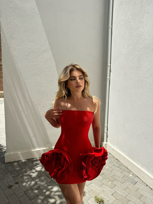 Fustan bust me trendafila para. Eshte i shkurter dhe vjen ne ngjyren e kuqe. Ka...