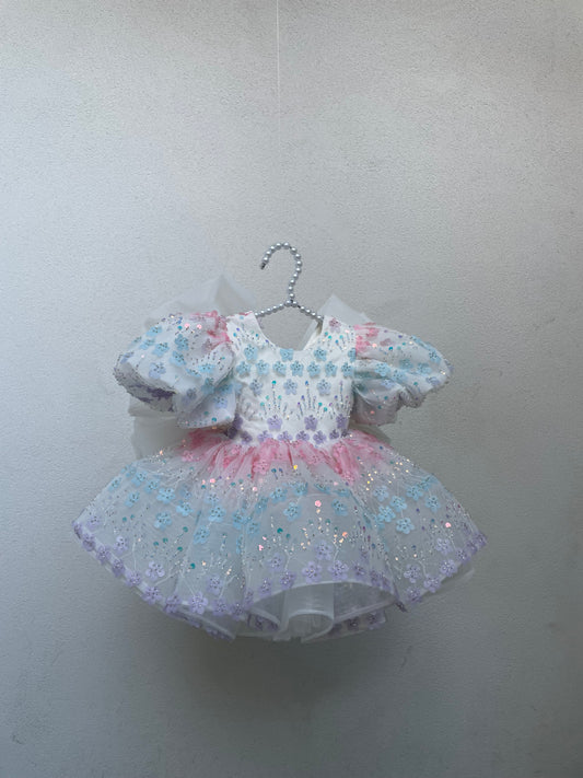 Fustan i fryre me detaje me gure dhe fjongo. Eshte ne ngjyren e bardhe dhe...