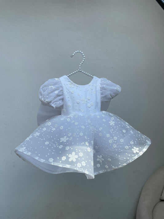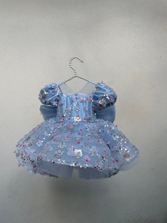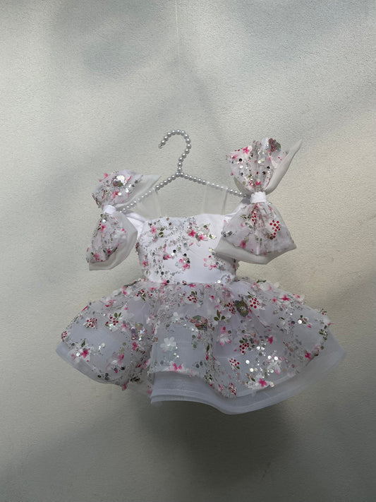 Fustan i shkurter me detaje me lule me xixa. Eshte i hapur ne pjesen mbrapa...