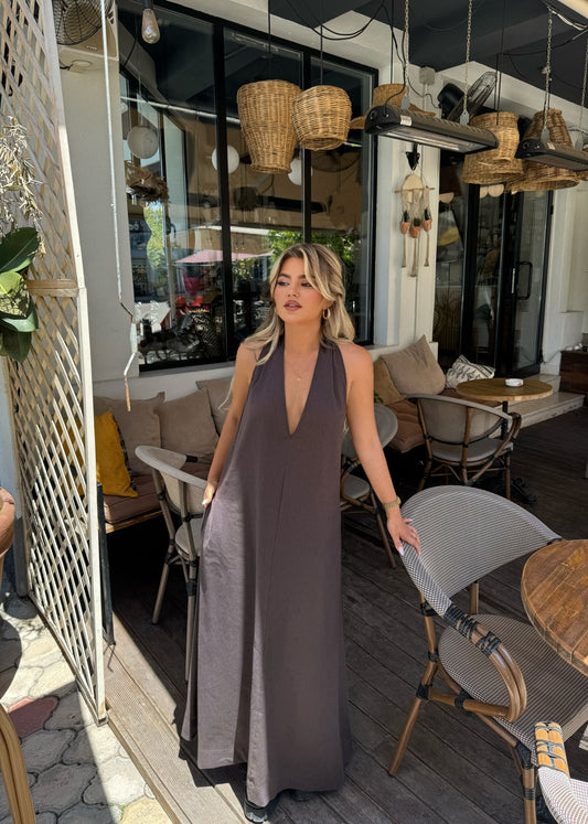 Fustan i gjate me rrip ne qafe. Eshte i thjeshte dhe shume i rehatshem. Material...