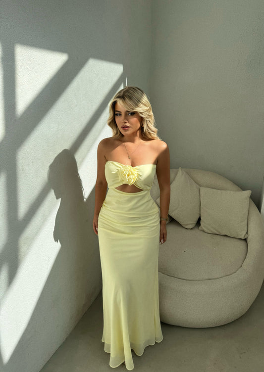 Fustan i gjate me zinxhir pas. Eshte me trendafil para ne pjesen e bustit. Ka...