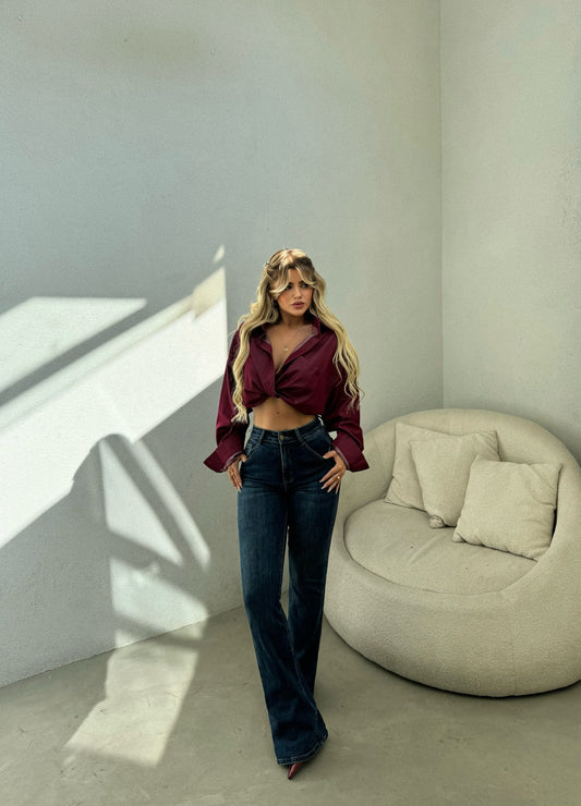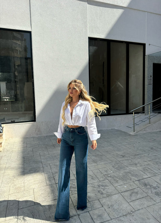 Xhinse prerje e drejte ne ngjyre blu te eret. Material elastik. Rrijne yll veshur.