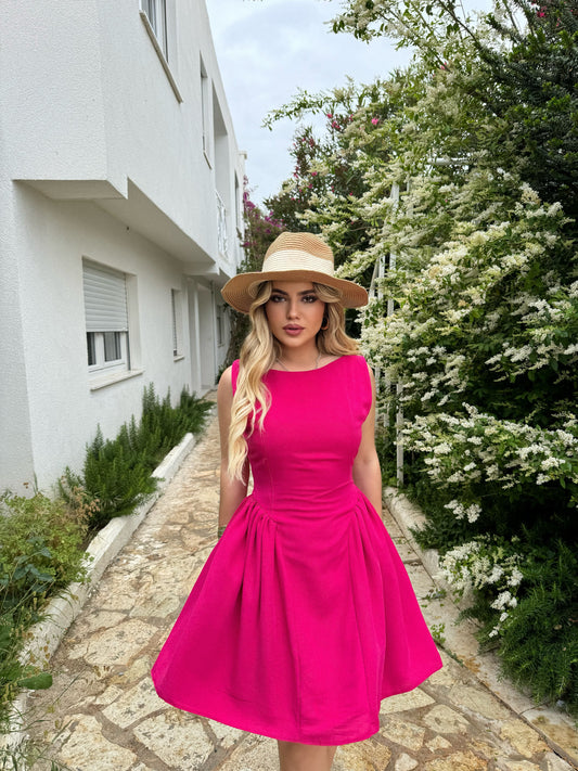 Fustan lino i shkurter. Vjen me zinxhir pas dhe me pala ne bel. Eshte teper...