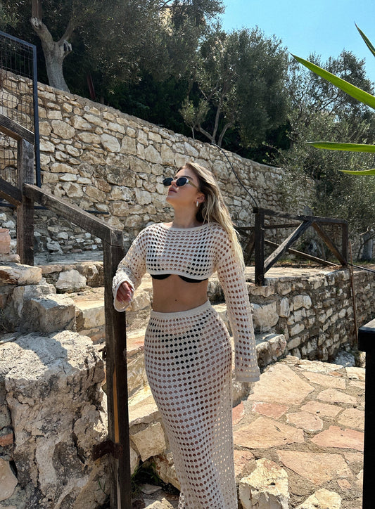 Set rrjete me bluze dhe fund.Fundi eshte me bel te larte, gjatesi normale. Bluza eshte...