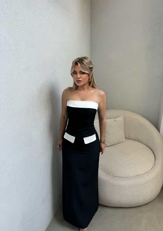 Fustan i gjate me rripa. Eshte ne ngjyren e zeze dhe ka nje te care...