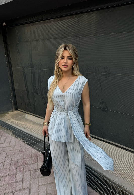 Set lino me kemishe dhe pantallona te gjata. Kemisha eshte me lidhje ne bel. Pantallonat...