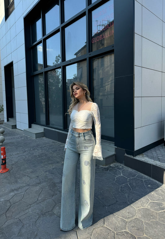 Xhinse te gjera me bel te larte. Material xhins i plote dhe shume i mire.