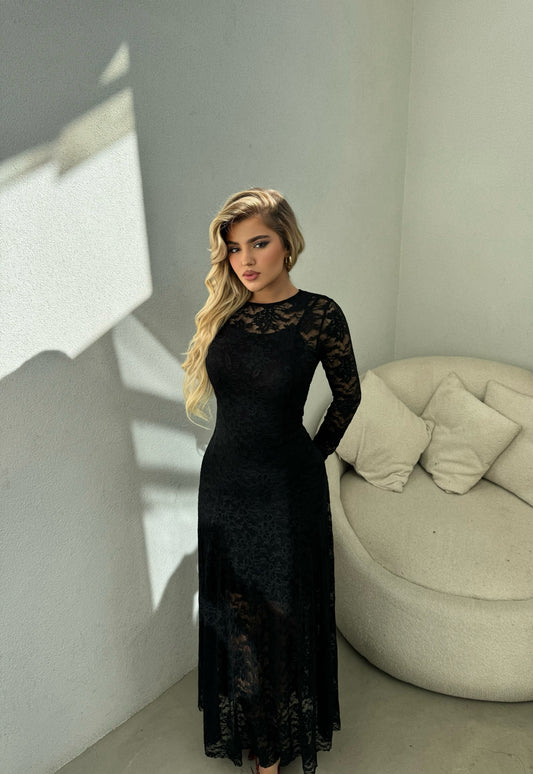 Fustan i gjate me astar poshte dhe dantelle siper. Vjen me menge te gjata ,...