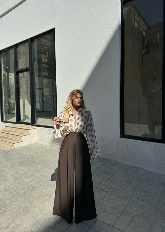 Pantallona te gjera me bel te larte me kopsa ne pjesen e belit, material i...