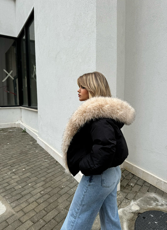 Xhupi vjen ne dy ngjyra kafe dhe te zeze, eshtei shkurter me pellush eshte kombinimi...