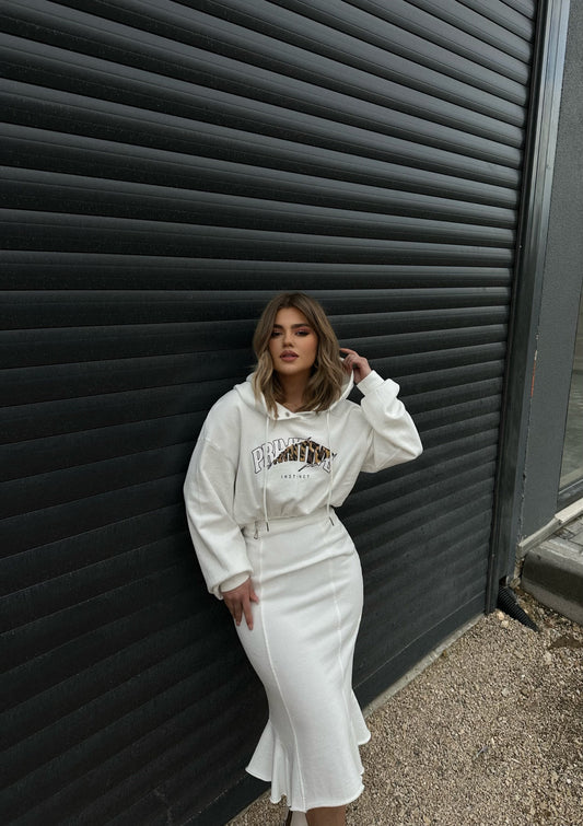 Set me bluze me kapuc dhe fund me gjatesi poshte gjurit. Vjen me zinxhir ne...
