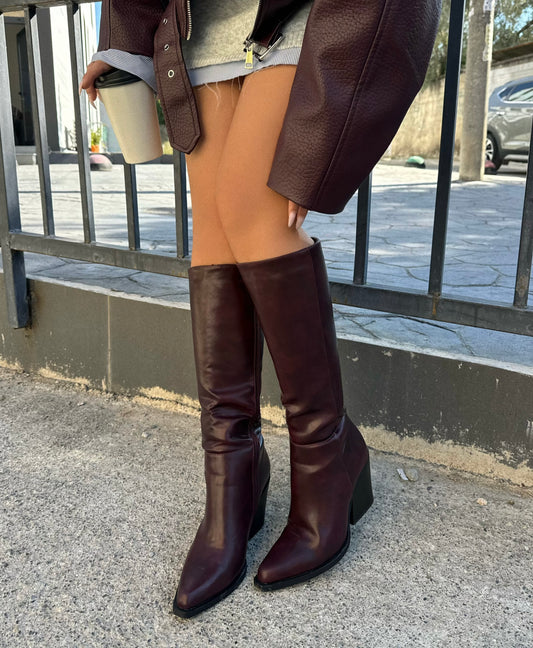 Keto çizme elegante ne ngjyre vishnje jane zgjedhja perfekte per çdo dite te ftohte.Te punuar me...