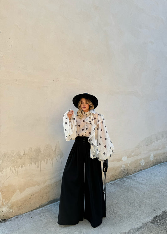 Pantallona te gjera me kopsa para . Kane gjeresi ne fund. Material i plote dhe...