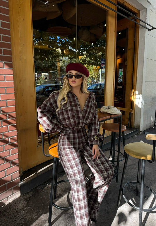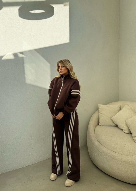 Set sportiv me dy pjese ne ngjyren kafe. Seti permban xhaketen me zinxhire ne stil...