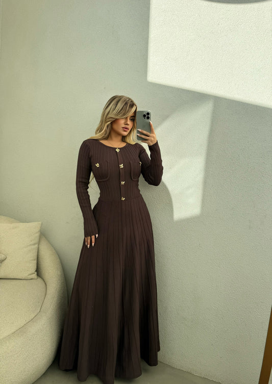 Fustan i gjate ne ngjyren kafe, material i plote dhe i bute. Lehtesishte i kombinueshem...