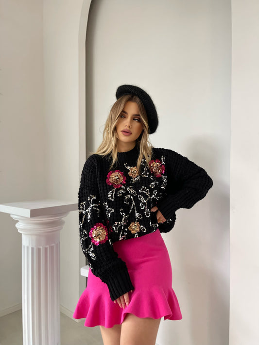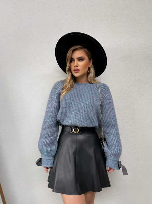 Pulover me jake rrethore me dizanjo me temina ne form lule. Me menge te gjata....