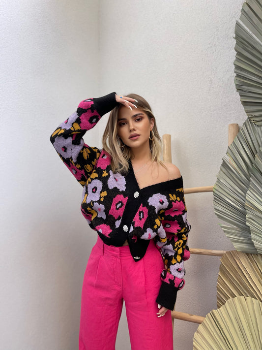 Pulover me lule me kopsa. Me menge te gjata. Ne fund te kraheve pulovra eshte...