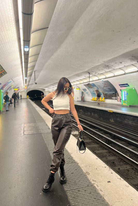 Pantallona lekure cargo me qemer ne pjesen e belit. Mberthimi behet me kops dhe zinxhir...