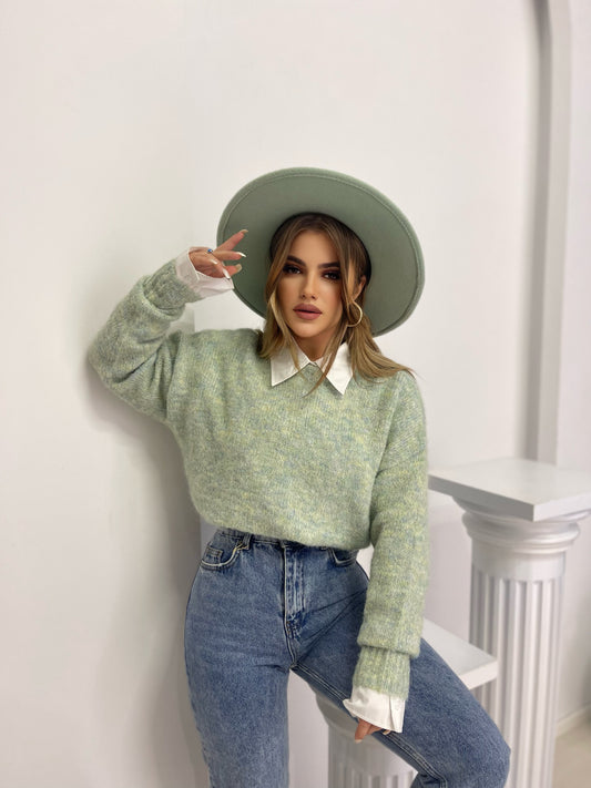 Pulover e shkurter me jake rrethore me menge te gjata, me doreza ne pjesen e...