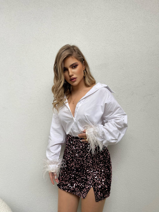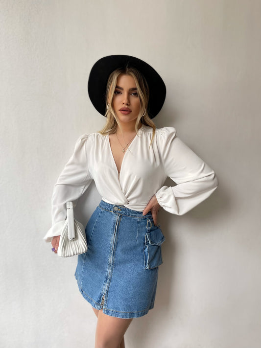 Bluze e shkurter me te lidhur para dhe rripa te gjate qe lidhen mbrapa. Me...