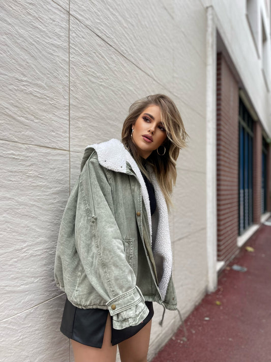Xhup pellush me kapuc me menge te gjata. Me kapuc te bollshem me zinxhir ne...