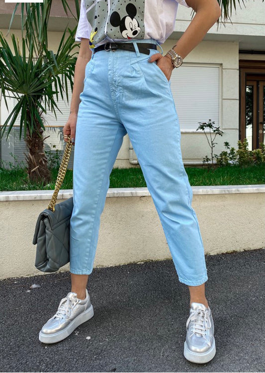 Pantallonat vijne ne ngjyre roze dhe bojeqielli. Prerje e drejte, stil mom fit, pa elasticitet. Rripi...