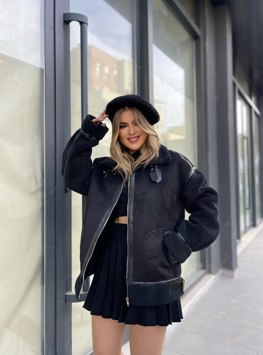 Xhup me pellush ne pjesen e jakes. Me menge te gjata me xhepa te bollshem...