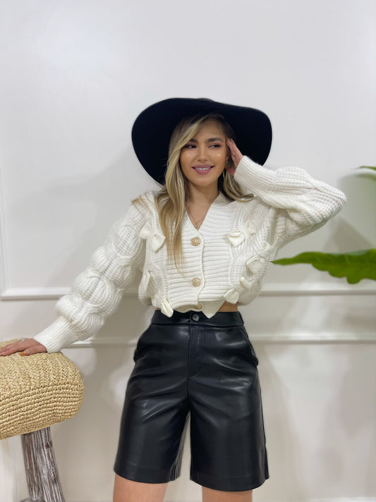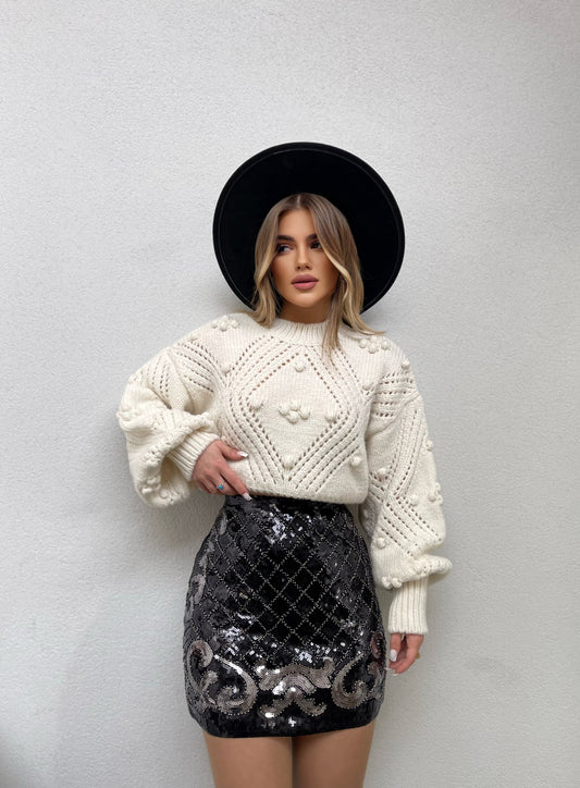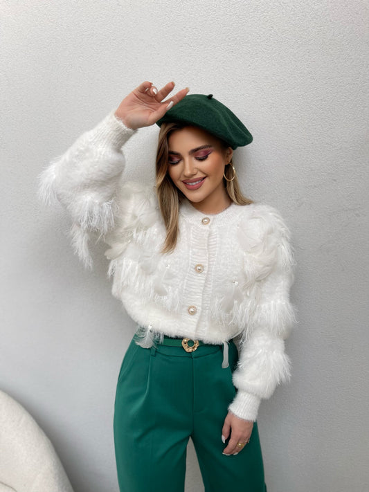 Pulover me kopsa me perla ne pjesen e perparme. Pulovra eshte me pupla ne pjesen...