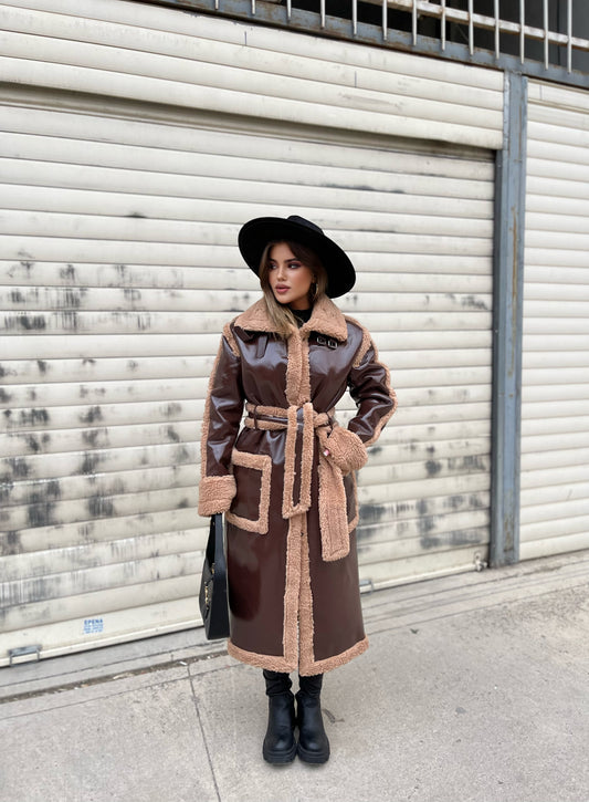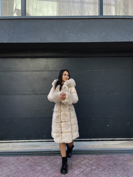 Lekure e gjate me pellush me menge te gjata. Me xhepa pllak dhe rrip ne...