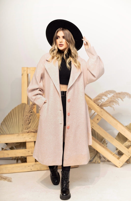 Pallto me jake me kapak me menge te gjata me rrip ne pjesen e belit....