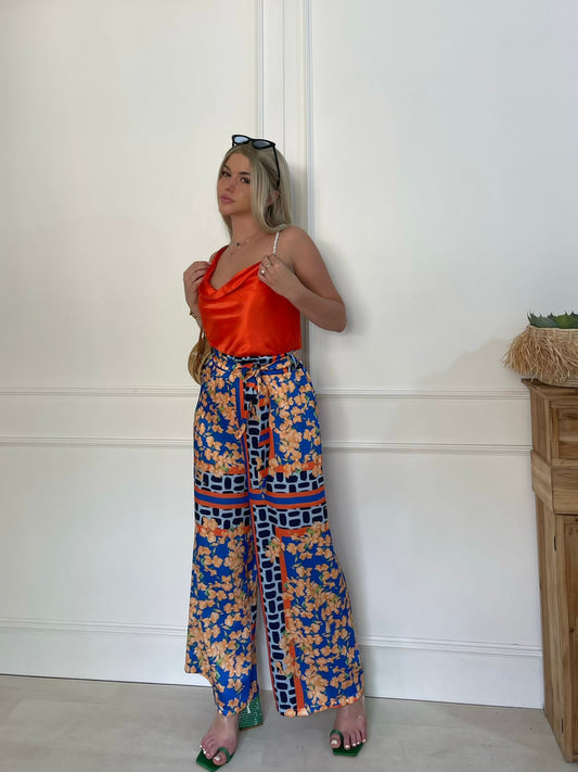 Pantallona me lule portokalli. Kane prerje te lirshme dhe material te fresket. Ne pjesen e...