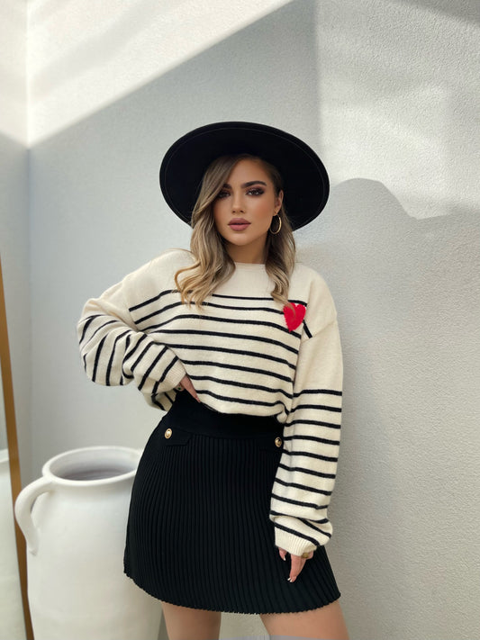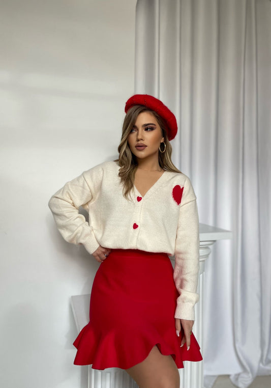 Pulover me kopsa me zemra ne pjesen e perparme. Me menge te gjata. Me dizenjo...