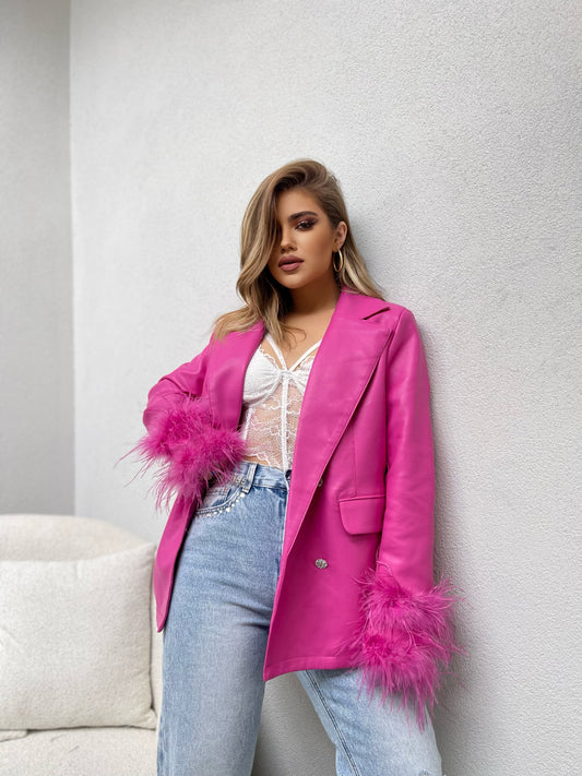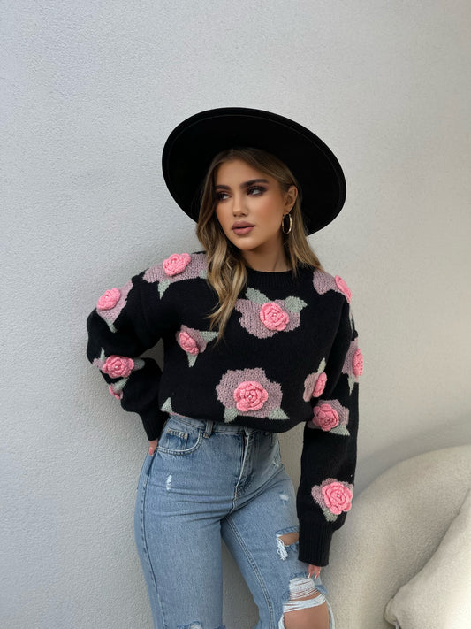 Pulover me trendafila roze me jake rrethore me menge te gjata me llastik ne pjesen...