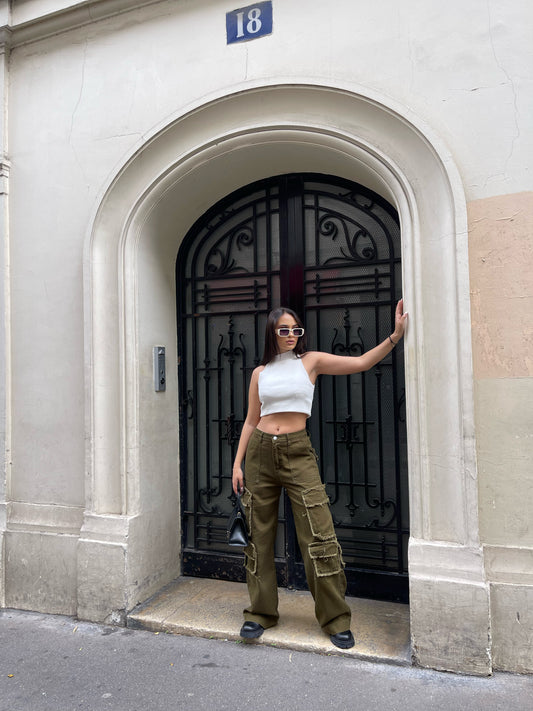 Xhinse cargo me qemer ne pjesen e belit. Stil i lirshem. Mberthimi behet me kops...