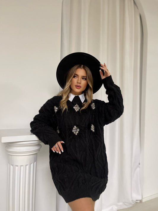 Fustan i gjate me pupla me temina. Me menge te gjata me jake rrethore. Fustani...