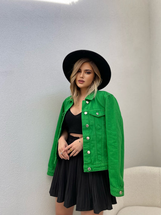 Xhup bojeqielli stil oversize me xhep ne pjesen e krahut. Mberthimi behet me zinxhir ne...