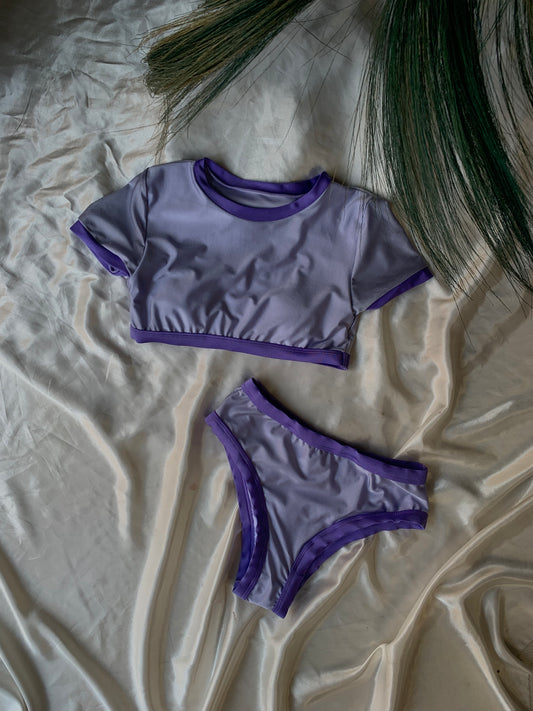 Rroba banjo me bel te larte. Me crop me menge te shkurtra. Bikinit jane ne...