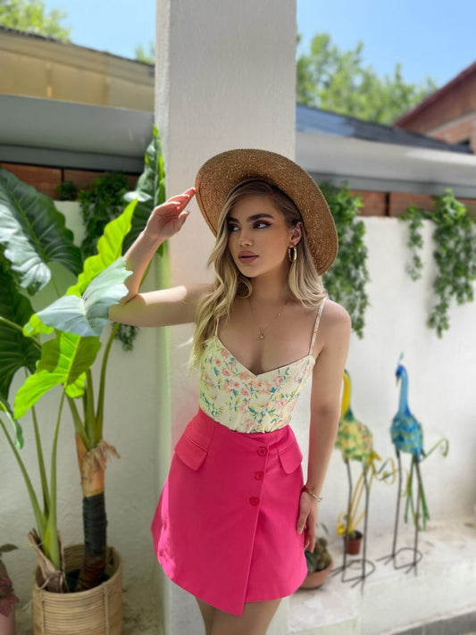 Xhinse te shkurtra me tegel me ngjyra. Me xhepa te bollshem. Mberthimi behet me zinxhire...