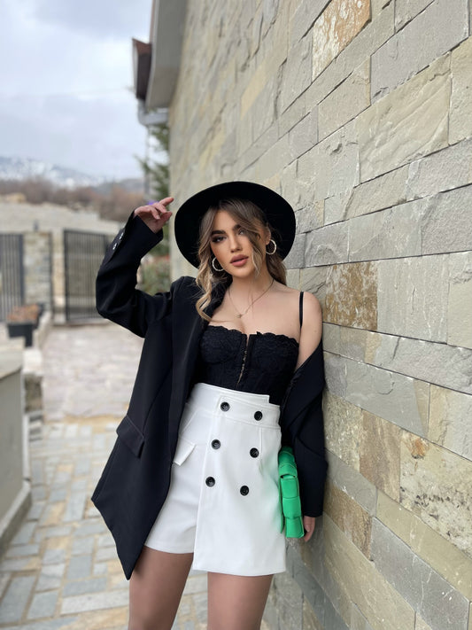 Fund-pantallone ne ngjyre te bardhe. Me bel te larte dhe gjatesi normale. Me dopio kopse...