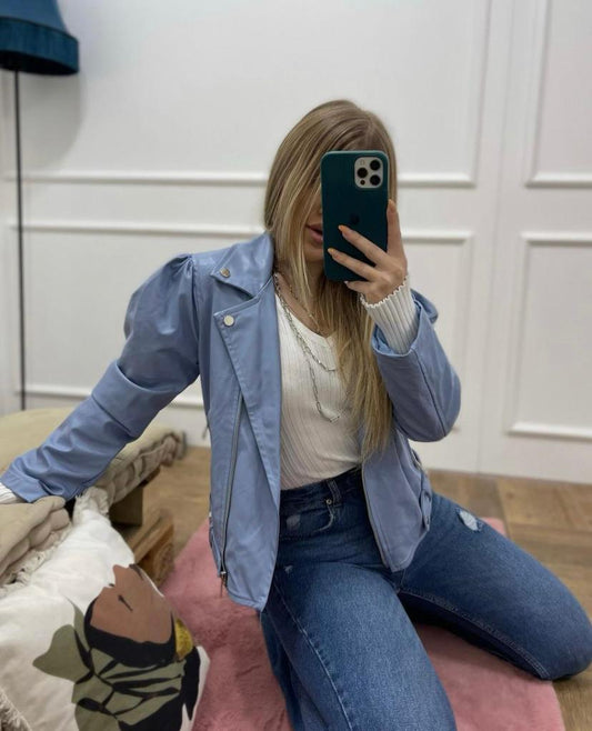 Pulover me jake rrethore me menge te gjata. Mberthimi behet me kopsa gold ne pjesen...