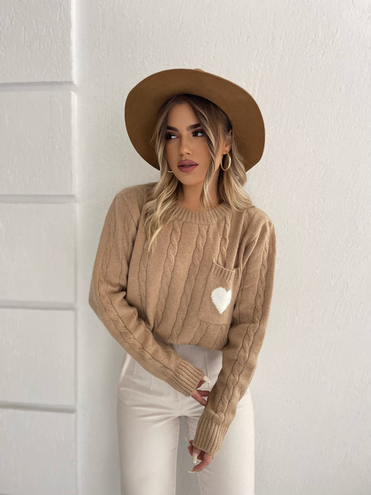 Pulover me menge te gjata me xhep pllak me zemer. Me jake rrethore. Pulovra ka...