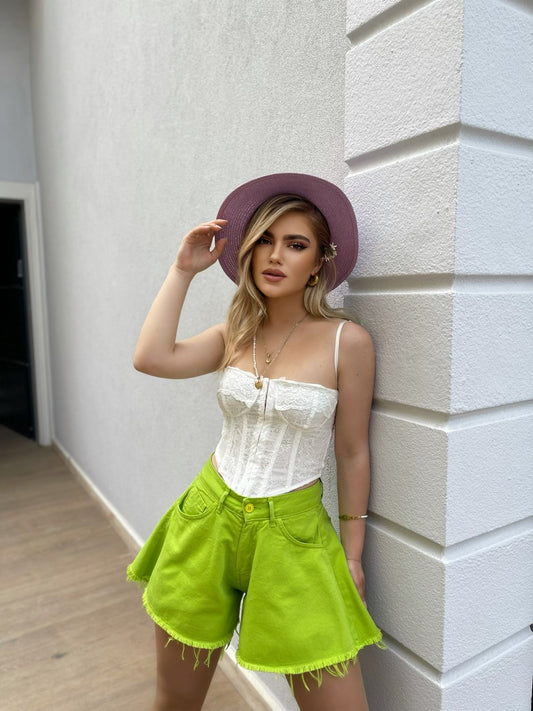 Geta jeshile me dizenjo te bardha. Me lartesi ne pjesen e belit. Jane material i...