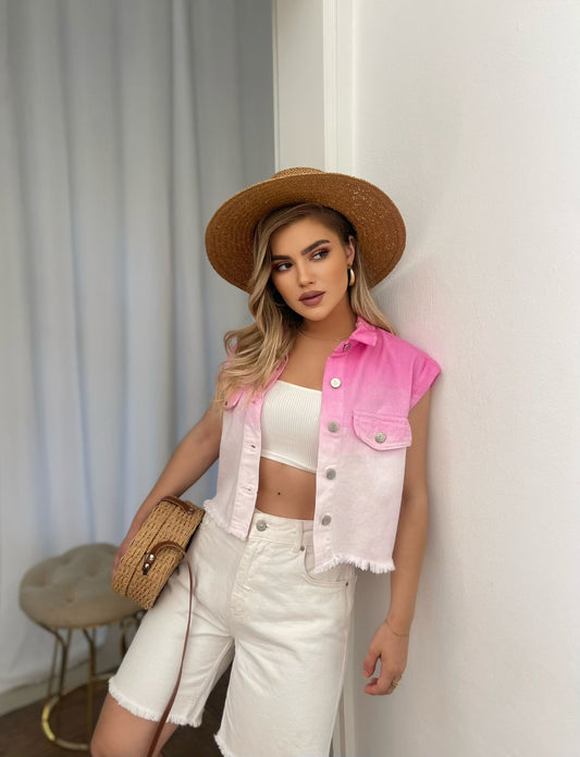 Jelek xhins me dy ngjyra. Me jake me kapak mberthimi behet me kopsa ne pjesen...