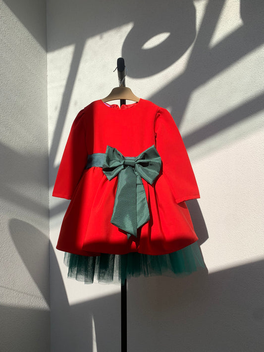 Fustan i kuq me fjongo jeshile ne mes .Fustani vjen i fryre poshte dhe ka...