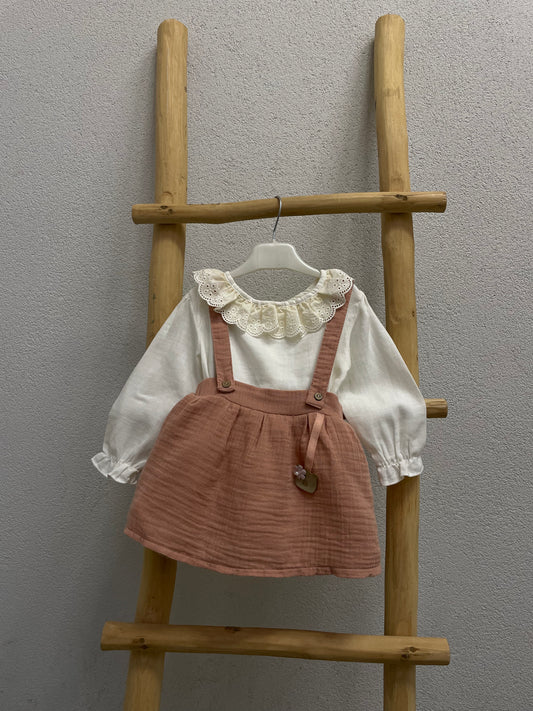 Fustan sarafan.Bluza pambuk me jake dantelle.Sarafani mberthehet me kopsa para dhe ka nje lule te...