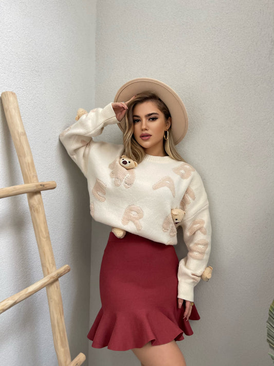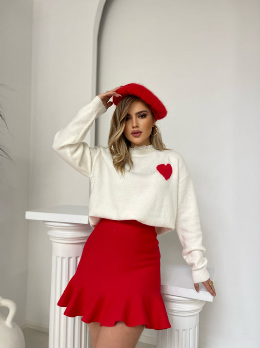 Pulover me jake dantelle. Me jake rrethore. Me gjatesi normale. Me zemer te kuqe ne...